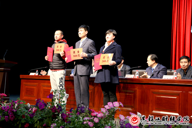 接着,会议宣布了我院教师在第三届黑龙江省大学生创新创业与就业指导课程教学大赛和黑龙江省普通高校体育教师教学技能大赛上分别获得一等奖的比赛成绩,宣读了学院2016~2017学年度课堂教学竞赛、学院第五届优秀科研成果奖、学院第四届辅导员职业能力竞赛获奖教师名单以及2015~2016学年度国家奖学金、国家励志奖学金、三好学生、校级奖学金、优秀学生干部、优秀寝室长、先进班级、文明寝室获奖学生和集体名单。随后,学院领导为获奖教师及学生代表颁发了荣誉证书及奖金。