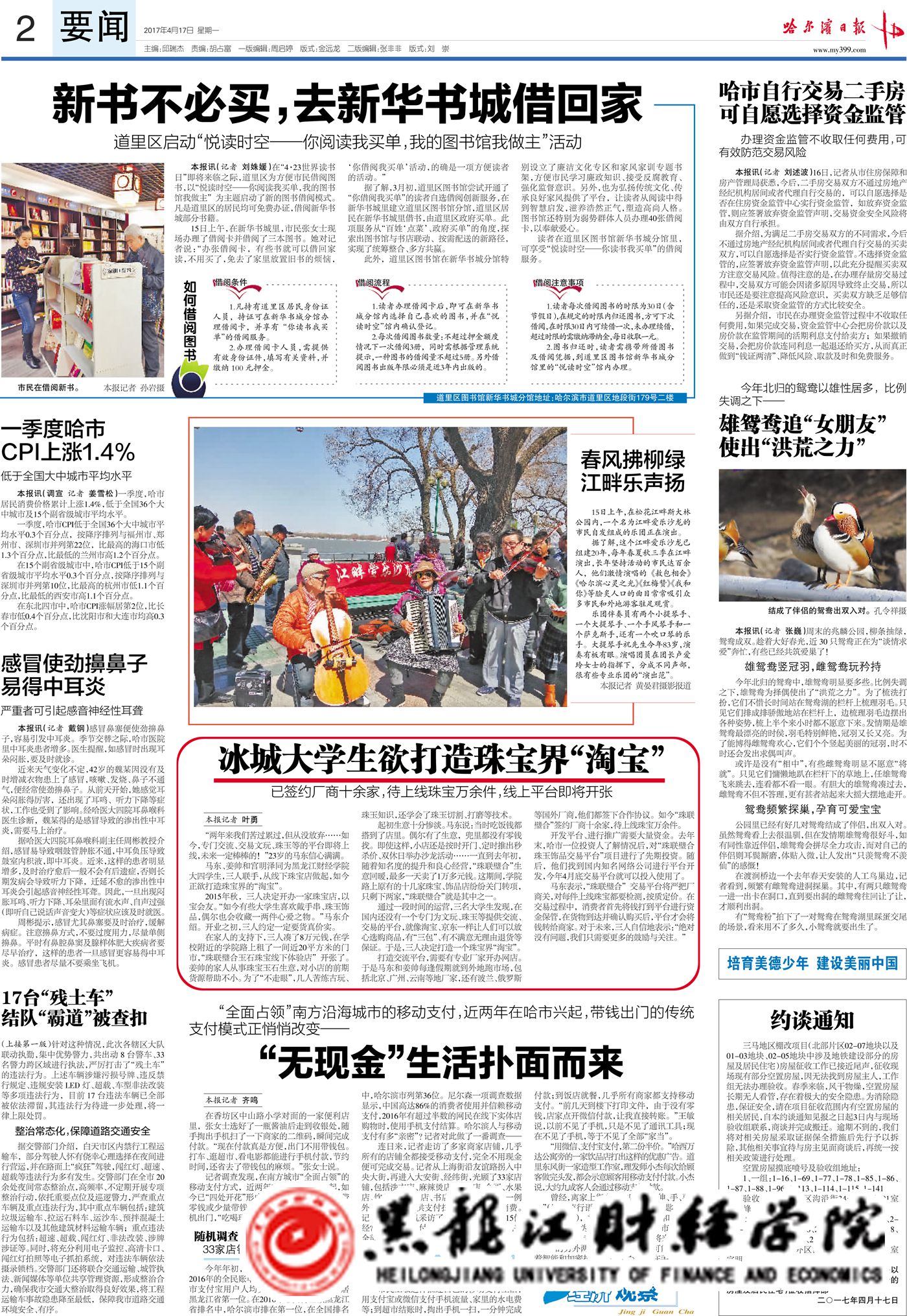 4月17日,《哈尔滨日报》要闻版以《冰城大学生欲打造珠宝界“淘宝”》为题,报道了我院大四学生马东、姜帅和宫明泽三人的创新创业事迹。他们从线下珠宝店做起,经过辛勤地经营,如今已签约国内外厂商十余家,待上线珠宝万余件,线上交易平台也即将投入使用。
