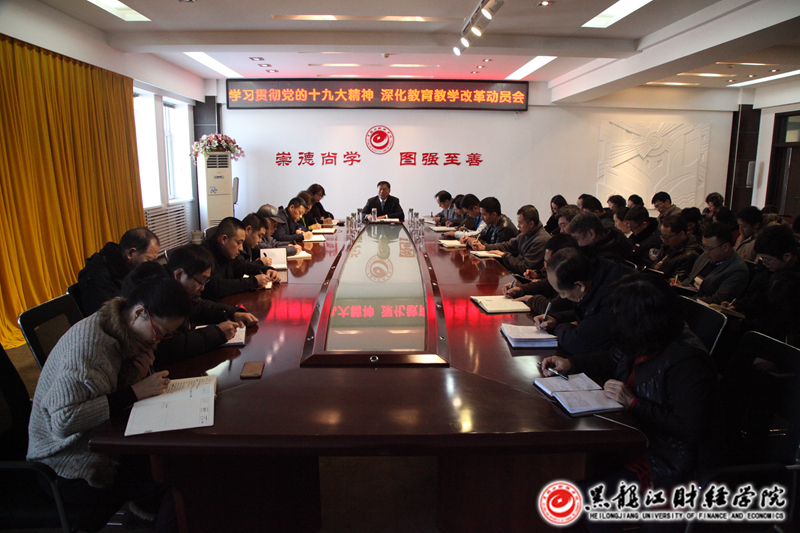 12月15日下午,我院在十楼第一会议室召开了深入学习贯彻党的十九大精神会议。院长魏兆胜出席会议,并作了题为《深入学习贯彻党的十九大精神,坚持用改革的方法破解学校发展中的各种困难和矛盾》的讲话。学院各单位负责人参加了会议,会议由副院长于长福主持。