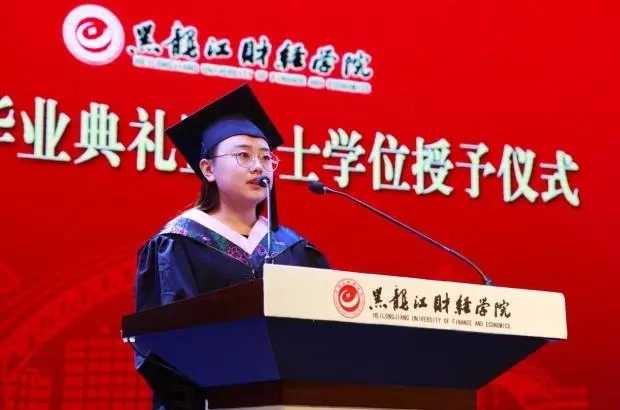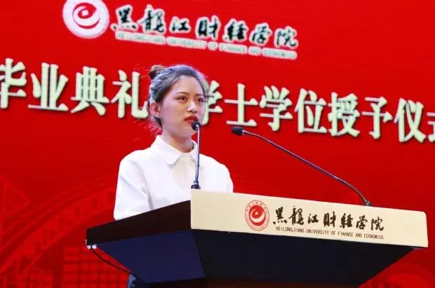 随后,毕业生代表会计系李佳颖同学回想了在龙财的成长心路历程,化作今日的离别感言,表达了对母校的深深感激之情。在校生代表经济系2015级金融学刘洋同学对毕业的学长学姐表达衷心的祝福,并表示在校生们会以学长学姐为榜样继续努力,为校争光。教师代表会计系教师裴兴才鼓励毕业生们带着期待与希望去探索、去奋斗,表达了母校老师对毕业生们的叮嘱和希冀。