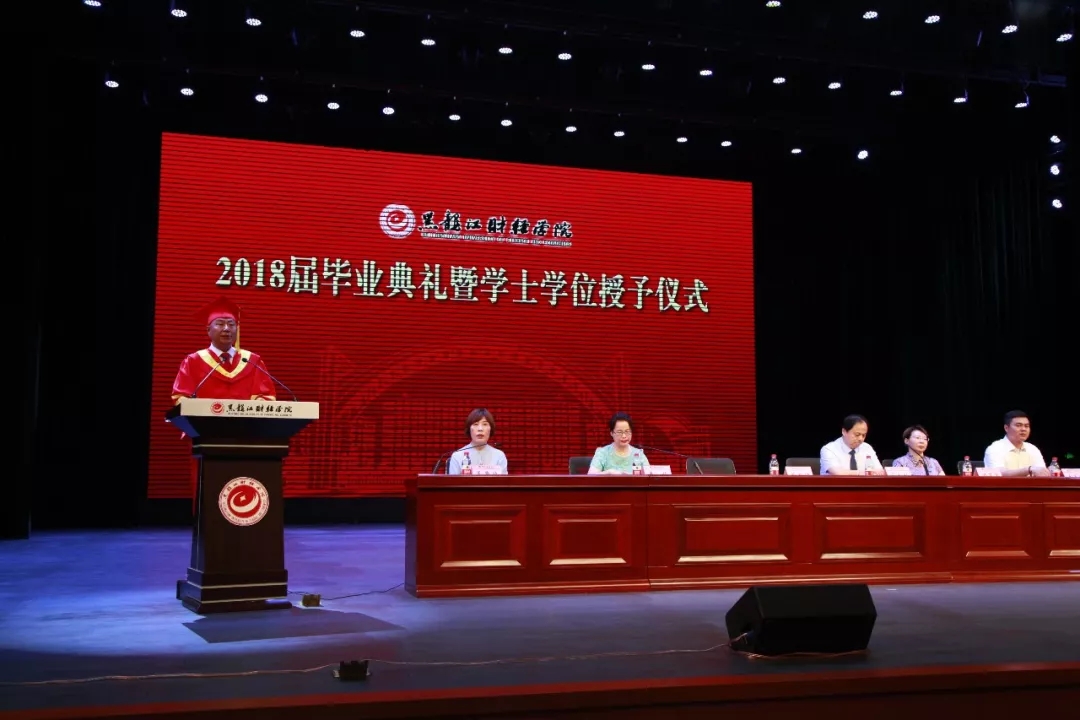 6月20日,黑龙江财经学院2018届毕业典礼暨学士学位授予仪式在音乐厅隆重举行。魏院长等学院领导在主席台就坐。各系主任、书记、行政单位负责人、全体辅导员,专业教师代表及2018届毕业生代表参加了典礼。毕业典礼暨授位仪式由党委副书记李怡主持。