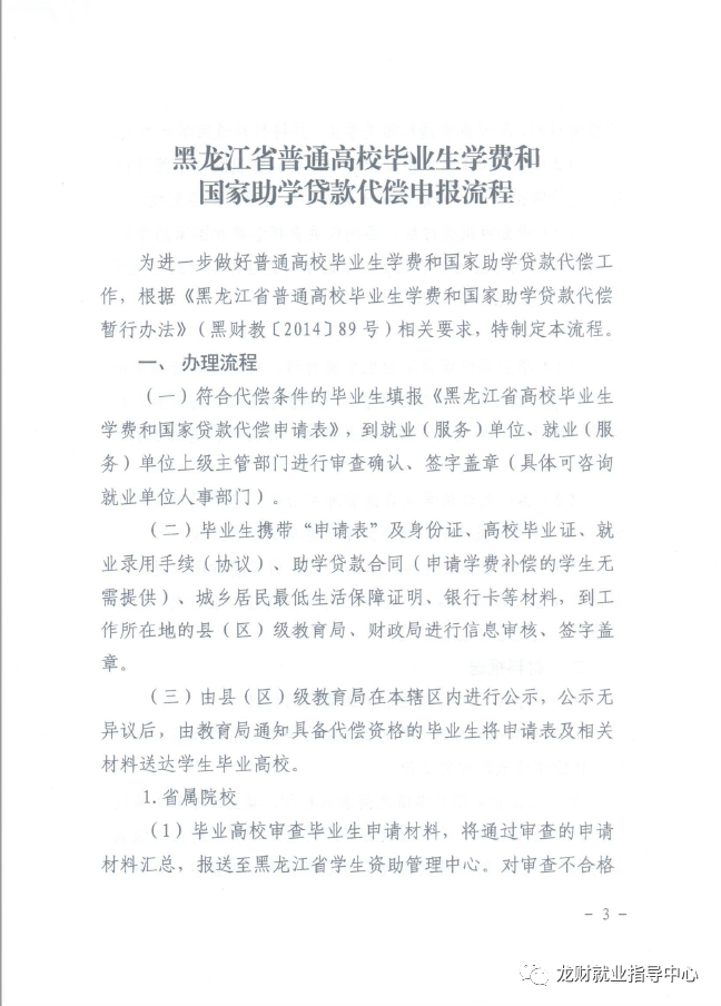 龙江省普通高校毕业生学费和国家助学贷款代偿申报流程》附下: