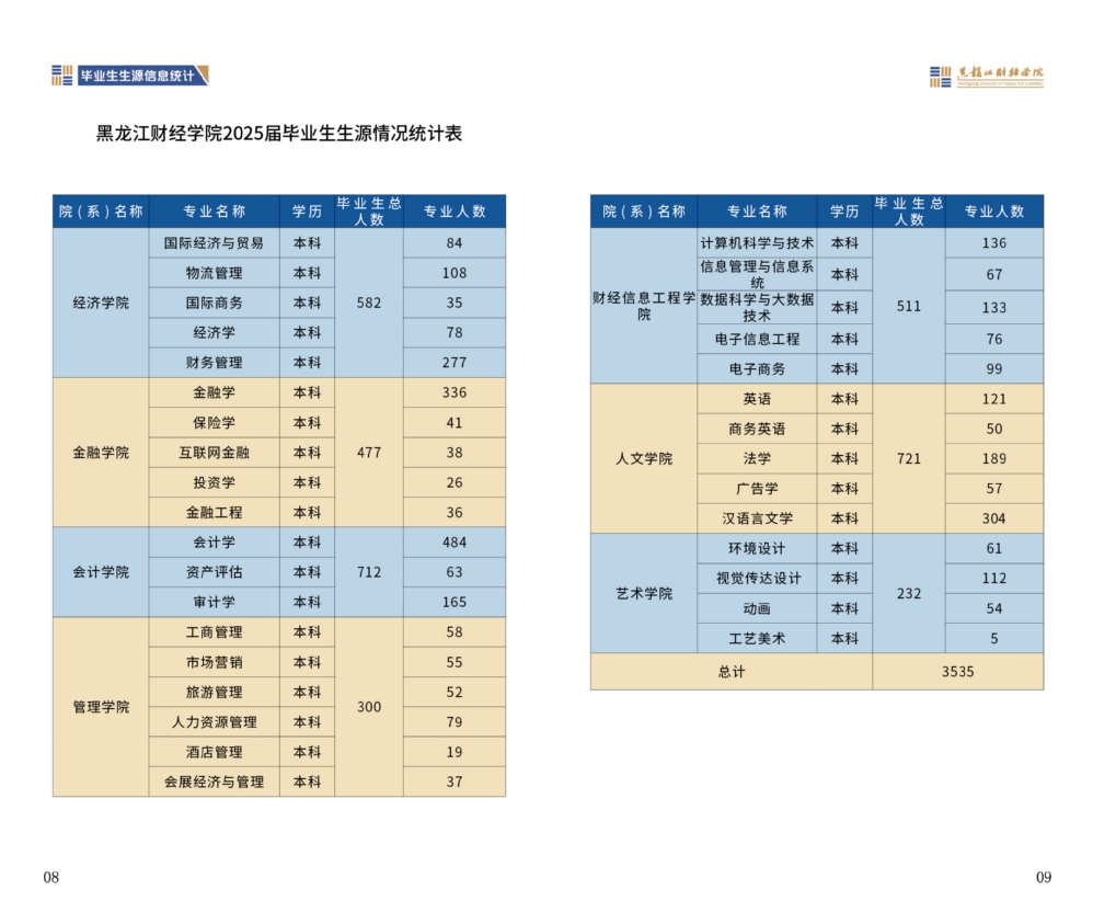 黑龙江财经学院2025届毕业生资源信息