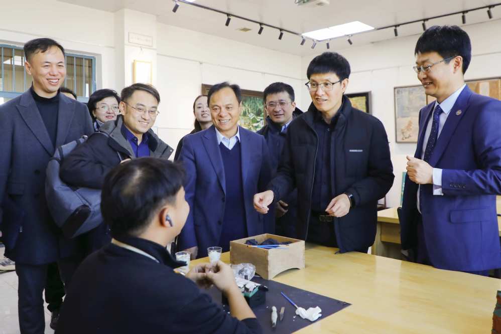 崔小生一行参观了学校文化创意产业学院、新金融智慧学习工场、龙财银行、货币文化博物馆、校史馆、红色财经之路博物馆、跨境电商产业学院等设施和场所。