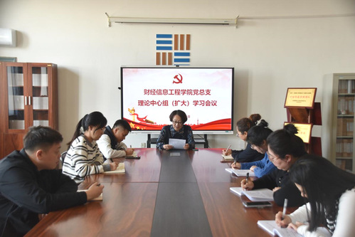 11月11日,财经信息工程学院党总支在尚学楼705室召开理论学习中心组(扩大)会议,专题学习《习近平谈治国理政》第五卷和党的二十届四中全会精神。会议由党总支书记代晓霞主持,学院党总支委员及全体辅导员参加会议。