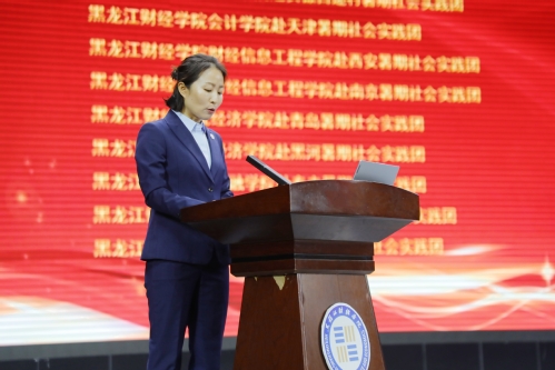 会上,李晓璇宣读了《关于表彰黑龙江财经学院2025年暑期社会实践团体和个人的决定》,与会领导为荣获2025年暑期社会实践“十佳社会实践团队”“优秀指导教师”“学生优秀个人”颁发证书。十佳社会实践团队分别作交流发言,分享了社会实践经验做法和学习收获。