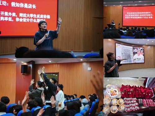 互动环节中,徐宏设置“假如你是店长”实战情景,引导学生针对“外卖复购率低”的问题设计营销活动。同学们踊跃发言,提出“抖音续火花”“游戏段位折扣”等创意方案,徐宏一一给予专业点评与建议,现场气氛活跃,互动热烈。