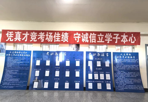 为进一步加强学院学风建设,严肃考风考纪,营造公平公正、风清气正的考试环境,人文学院以考前教育为抓手,以精准帮扶为支撑,以氛围营造为保障,面向学院49个班级,1632名在校生,组织开展诚信考试教育活动,为期末考试工作的顺利开展奠定坚实基础。