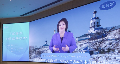 俄罗斯喀山创新大学校长季米莉亚莎娃通过视频发表致辞